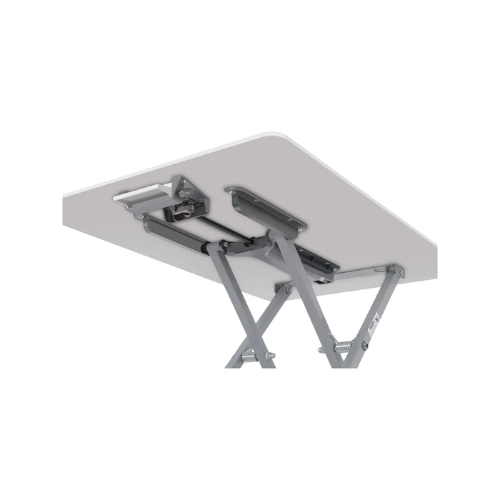 Tabletop measures 76.5cm X 51cm, provides compact space for a monitor, laptop, keyboard, mouse, and more, load weights up to 12.3kg