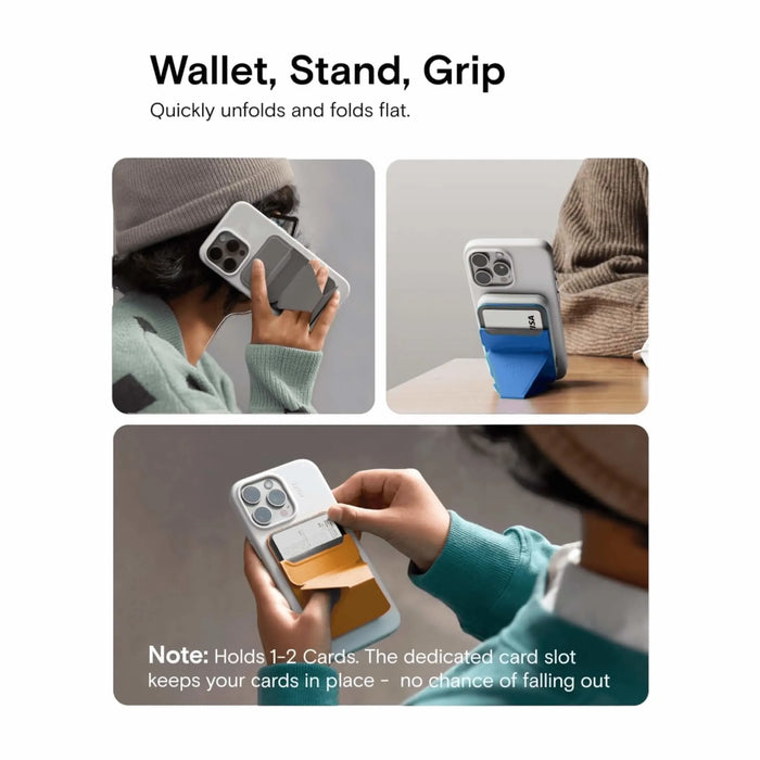 Wallet, Stand, Grip in One - Only 0.2” thick, this ultimate origami commuter magsafe wallet sits unintrusively on the back of the phone. It is all you need to take for viewing comfort on any surface, card storage, and even a one-handed phone grip.