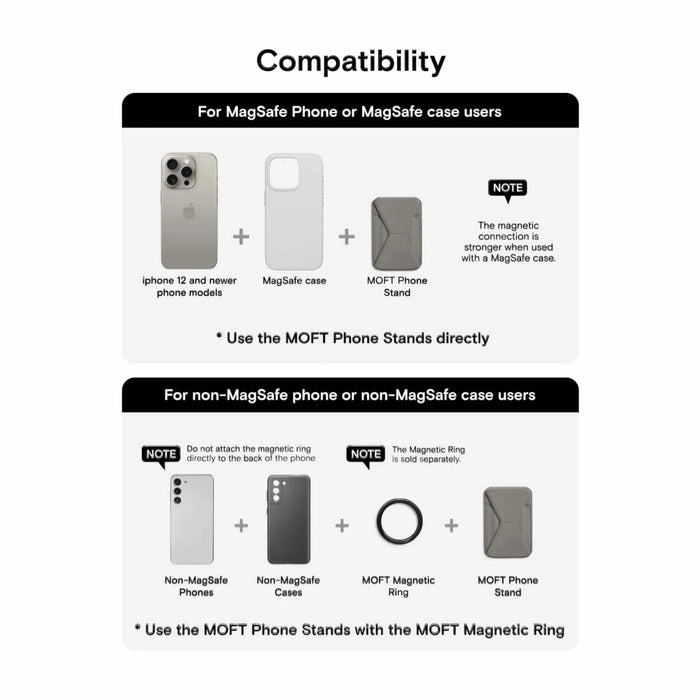 Strong Magnets - The slimmer MOVAS Leather allows for stronger magnets without adding bulk. MOFT magsafe wallet is compatible with iPhone 16/ 15/ 14/ 13/ 12 and MagSafe Phone cases